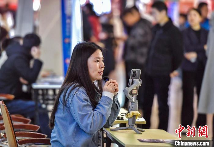 工作人员通过直播,在网络上展示招聘活动现场情况。中新网记者刘新摄