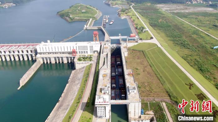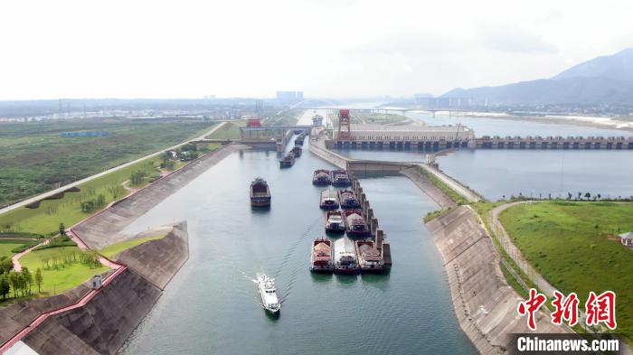 图为待闸船舶在闸室内有序等待过闸。安宇摄