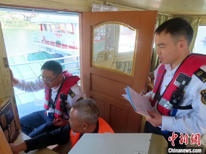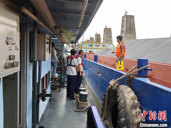 图为海事执法人员对等待进闸船舶进行安全提醒(资料图)。黄煜熙摄